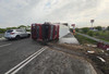 Камион се преобърна и разсипа тонове картофи на АМ "Тракия"